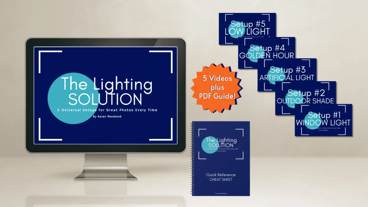 The Lighting Solution is for beginner photographers who are tired of taking 100 photos hoping one works. This hands-on video guide shows you exactly where to stand, where to put your subject, and what light to use—so every photo turns out right the first time.